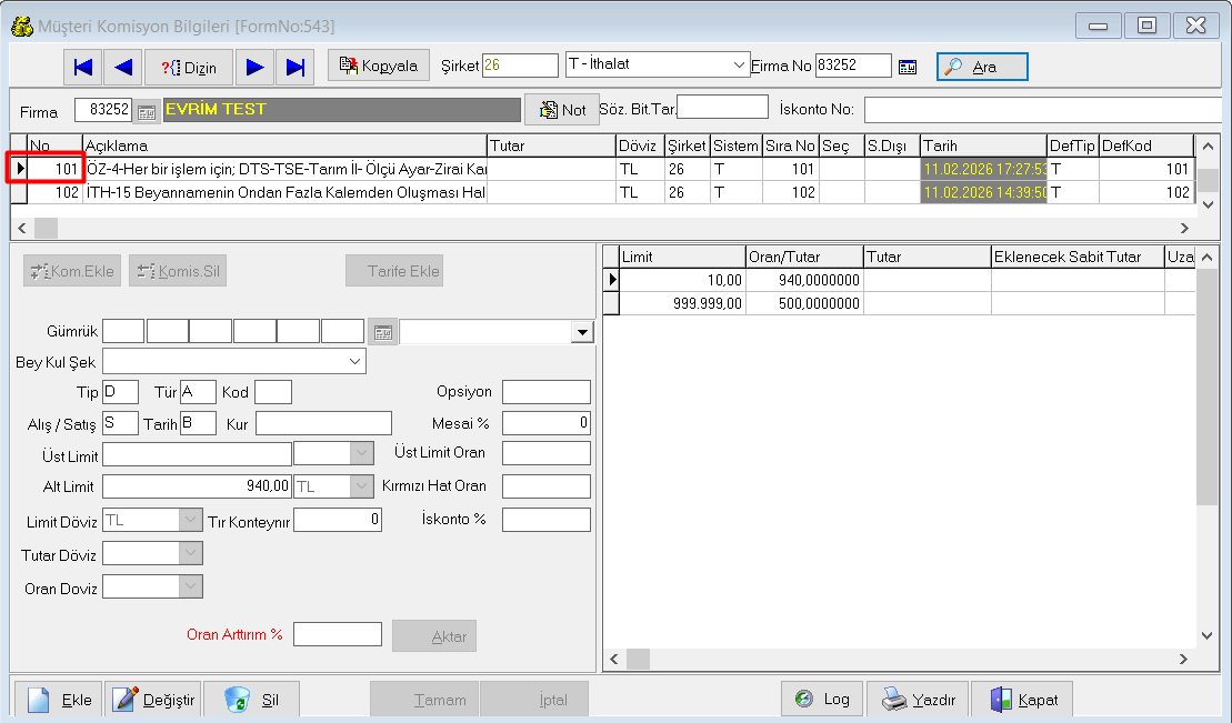 2024 Asgari ücret tarifesine eklenen İHR-9 ve İTH-15 komisyonlarının; müşteri komisyonları oluşturunca otomatik olarak 10 kalemden sonraki her kalem için bahsi geçen tutarın fatura komisyonuna eklenmesiyle ilgili çalışma tamamlanmıştır. ÖZ-5 ...