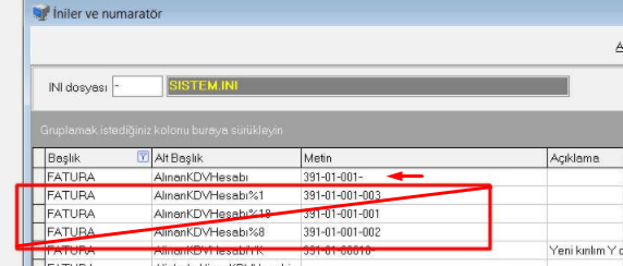 Kırmızı alan içerisinde olan ayarlamalar artık geçerliliğini yitirmiş olup " AlınanKDVHesabı " alanına girilen hesap bilgisine göre işlem yapacaktır.