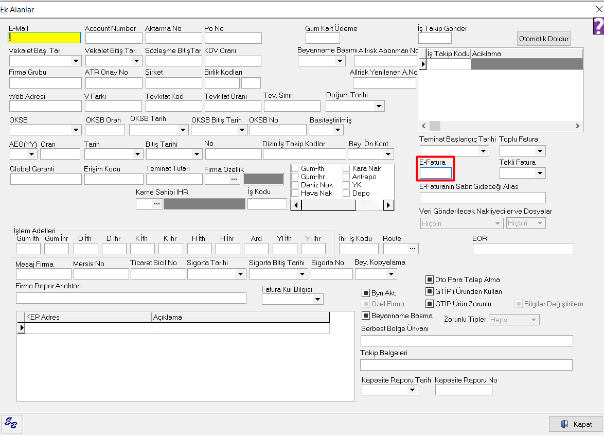 E Faturada İlgili Alanı Ekleme ya da Düzenleme
