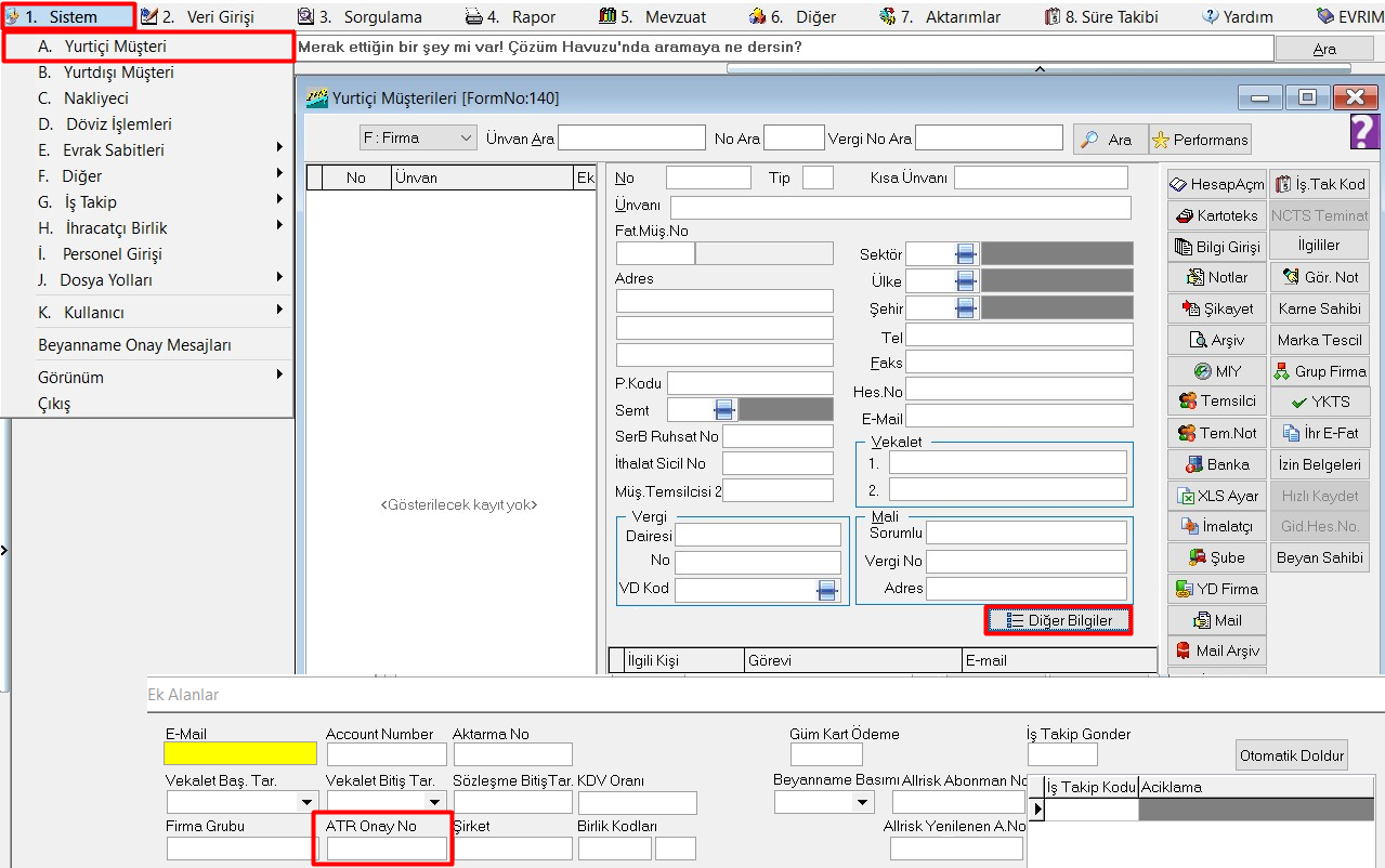 1.Sitem > A. Yurtiçi Müşteri > Diğer Bilgiler ekranından