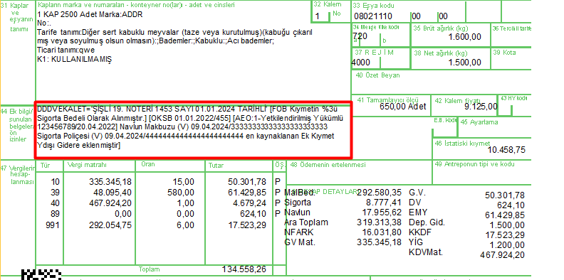 İthalat ve İhracat Beyannamelerinin görüntüsü alındığında 4 nolu hane beyannamedeki ekli liste sayısını göstermektedir. Örnek: Beyannameye ait 2 ekli liste mevcutsa 4 nolu alana otomatik olarak 2 atacaktır.