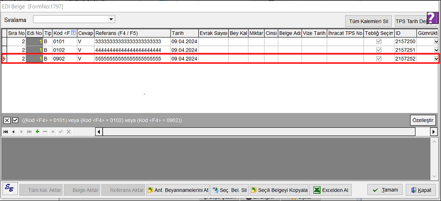 Edi belgede 0701(TCGB) kontrol edilmelidir. Beyanname numarasının doğru giriş yapıldığına emin olunmalıdır. 0701 belge kodunun referans alanında 8 haneli tescil numarası değil 18 hane şeklinde tam tescil numarası yazılmış olmalıdır formatında veya ...