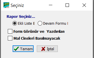 - Ekli liste olarak veya devam formu olarak basabilirsiniz.