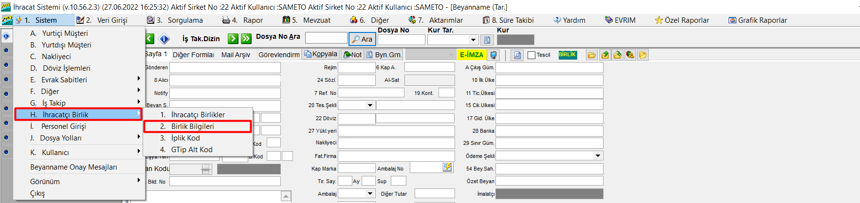 Sistem üzerinden kayıt belgesi alındığında Birlik referans numarası ithalat beyannamesi sayfa 3 te bulunan birlik referans no alanına otomatik atmaktadır. Aynı zamanda birlikten dosyalar alındığında sistem edi belgeye 0877 belge kodu ile kayıt belgesine ait 23 haneli ID yi tümü kalemlere eklemektedir.