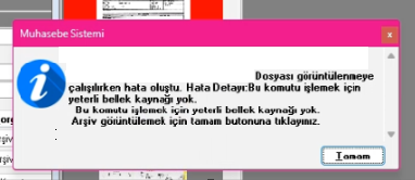 Arşiv dosyalarını görüntülemeye çalışırken aldığınız hata, Windows işletim sistemi kaynaklı bir uyarıdır. Bu durum, JPEG dosyasının boyutunun Windows’un işleyebileceği sınırların üzerinde olması nedeniyle meydana gelmektedir. Doğrudan Windows’un dosya boyutu sınırlamaları nedeniyle hata gelmektedir. Hata veren dosyanın boyutu, Windows’un sınırlarına uygun şekilde küçültülerek yüklendiğinde hata ile karşılaşılmayacaktır.