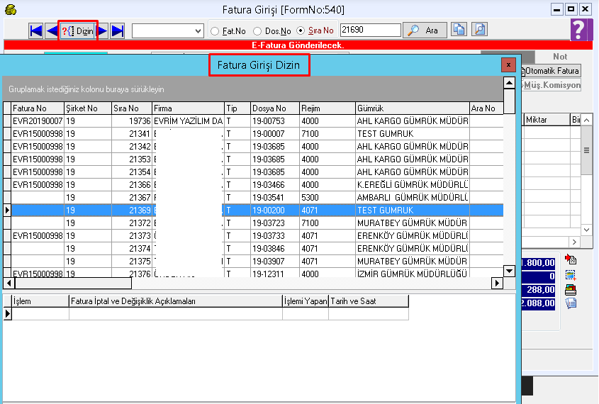 Başlık: FATURA / Alt Başlık: FaturaNoKontrol/ Metin alanı 1 olmalıdır.