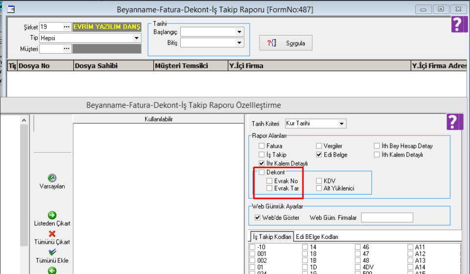 2- Özel Raporlar / Beyanname Fatura Dekont İş takip raporundan da alabilirsiniz.