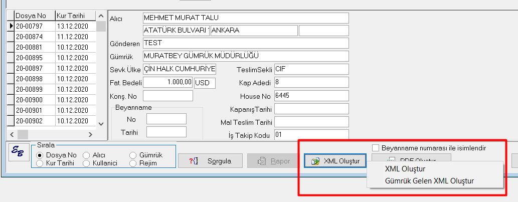 Gümrüğe giden dosyanın XML haline nasıl ulaşabilirim?