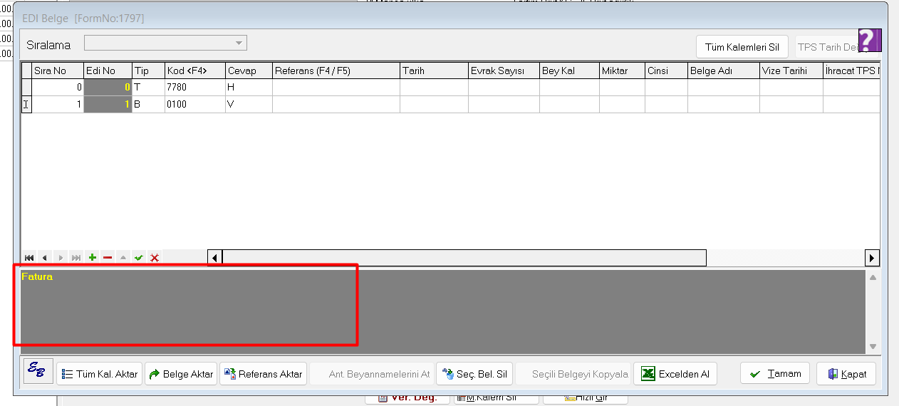 Edi Belgenin Kod ve Referans alanı dolu olmalıdır.