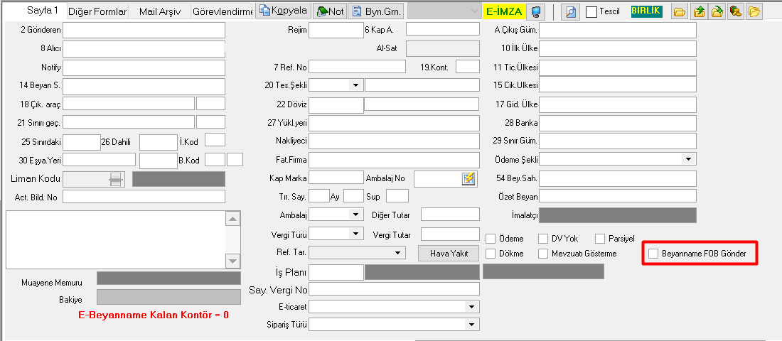 5- Beyanname Fob Gönder butonunda tik olup olmadığı kontrol edilerek gönderim sağlanmalıdır.