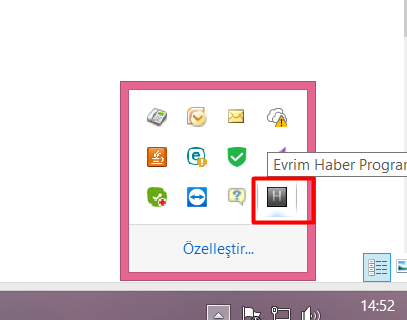 Eğer Evrim Haber üstünde HTTP Error 404 hatası geliyor ise; Evrim Haber versiyonu eskide kalmıştır. Bunun için masaüstünde bulunan Evrim Haber kısayol dosyasının doğru yerden çekildiğinden (X:\ exe) ve doğru versiyon çekildiğinden emin olunmalıdır. Evrim Haber kapatılıp açılmamış olabilir, kapatılıp açılması gerekmektedir. Bunun için bilgisayar saatinin yanındaki yukarı ok tuşuna tıklanıp Haber bulunur ve sağ tıklanıp kapat denilir.