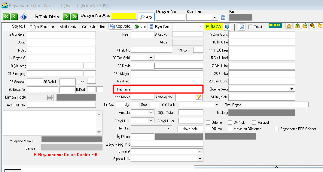 Olay : Birden fazla müşavir ile çalışmaktayız, bazı firmalarımıza özel olarak belirlediğimiz müşavirin imza atmasını istediğimiz için beyanname yazarken firma seçiminde müşavirin otomatik olarak gelmesini istiyorum ? Çözüm : 1 Sistem \ A. Yurt içi ...
