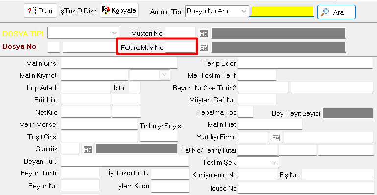 Dosyada ya da ortak beyanname gibi alanlarda fatura müşteri numarasının otomatik gelmesi için yurtiçi müşteri ekranından tanımlama yapabilirsiniz.