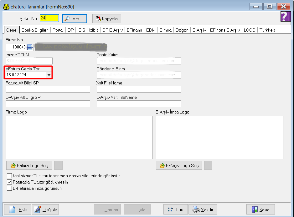 4-) Alıcı firmanın e fatura geçiş tarihinden önce bir fatura kesilir ise firma o tarihte e fatura mükellefi olmadığından dolayı e arşiv fatura olarak görünecektir.