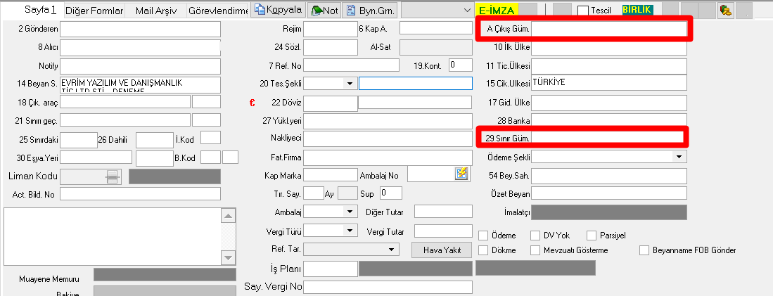 1.) Beyanname üzerinde Gümrük alanında F4 yapılarak işlem yapılacak gümrük idaresi seçilmelidir.