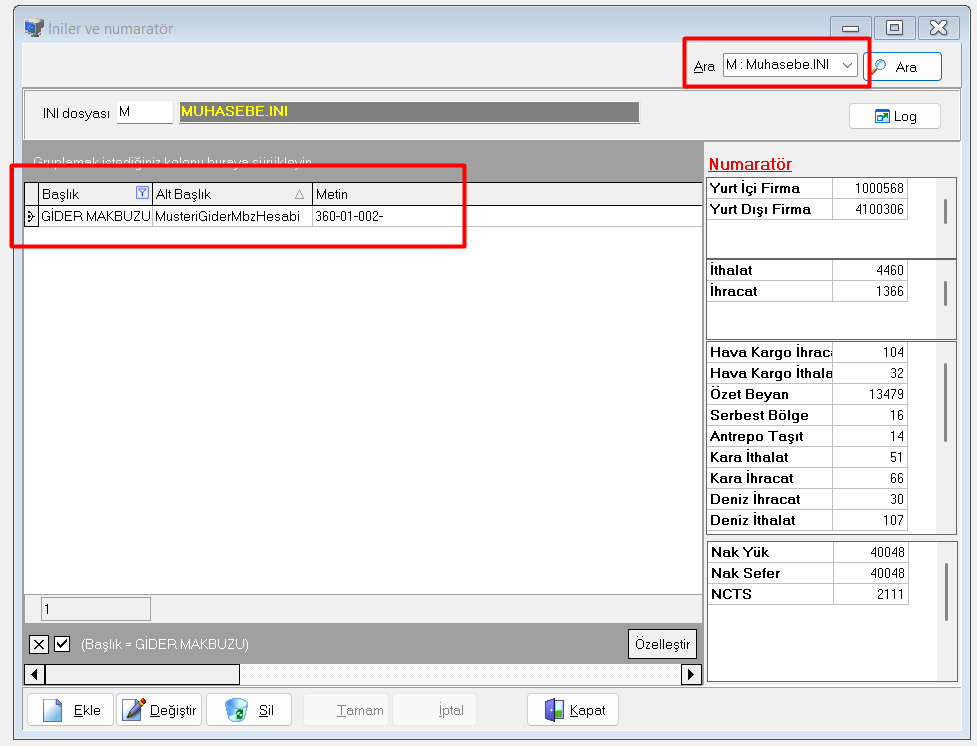 Gider Makbuzu girişi ekranında muhasebeleştirme yapıldığında, stopaj tutarının tanımladığınız hesap numarasına aktarılması için EvrimHaber > Diğer > USERS ekranına Admin ile giriş yapınız. Sistem > İni Dosya Ayarları ekranında Ara alanında "Muhasebe" seçilmelidir. Başlık alanında "GİDER MAKBUZU", Alt Başlık alanında "MusteriGiderMbzHesabi" bulunuz. “Değiştir” seçeneğine tıklayarak, “Metin” alanına ilgili hesap numarasını tanımlayınız.
