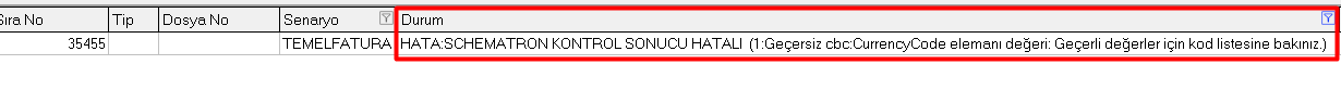 HATA:SCHEMATRON KONTROL SONUCU HATALI (1:Geçersiz cbc:CurrencyCode elemanı değeri: Geçerli değerler için kod listesine bakınız.)