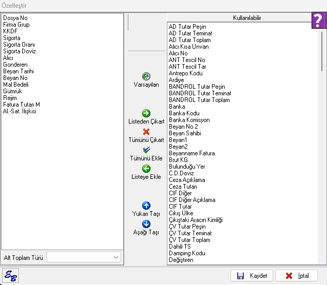 İthalat Beyannamesi / Sayfa 2 de vergiler alanındaki ÖŞ (Ödeme Şekli ) alanında girilen verilerin raporu Özel Raporlar / Özel Rapor Tasarım /Kalem Bazında ekranında vergi koduna göre Ödeme Şekli bilgisi alınır. Yeni rapor butonuna tıklanıp ...
