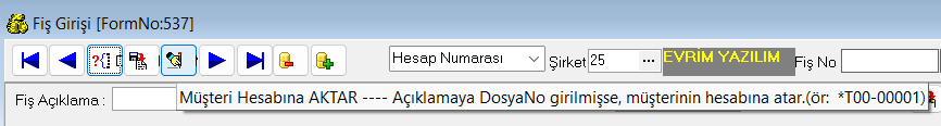Fiş girişi yapıldığında kayıt sonrası karşı hesaba aktar işlemi yaparken ''Hesap No Boş Olamaz '' hatası alındığında; girmiş olduğunuz satır Kdv'li bir kayıt ise İndirilecek KDV Hesaplarınızın , EvrimHaber / Users alanına programında tanımlı olmaması ...