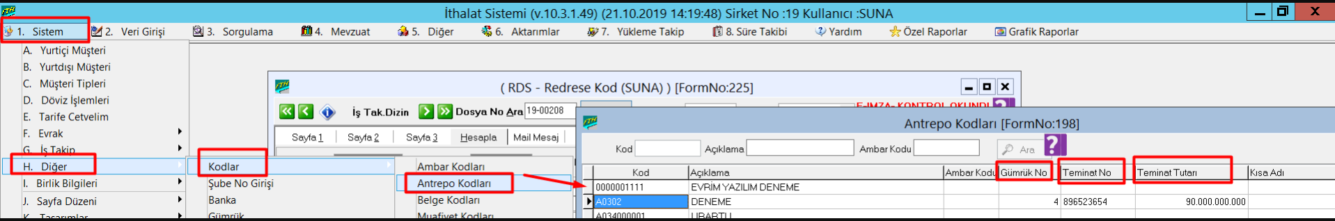 Antrepo Teminat Raporu İthalat Sistemi > Veri Girişi > Sorgulama *Bu ekranın amacı ; Antrepo dosyalarında girilen teminatların takibini sağlayadığınız ekrandır. Bunların ithalatları yapılınca sistemde kapanıyor ve bu ekrandan da takibi sağlanıyor. ...