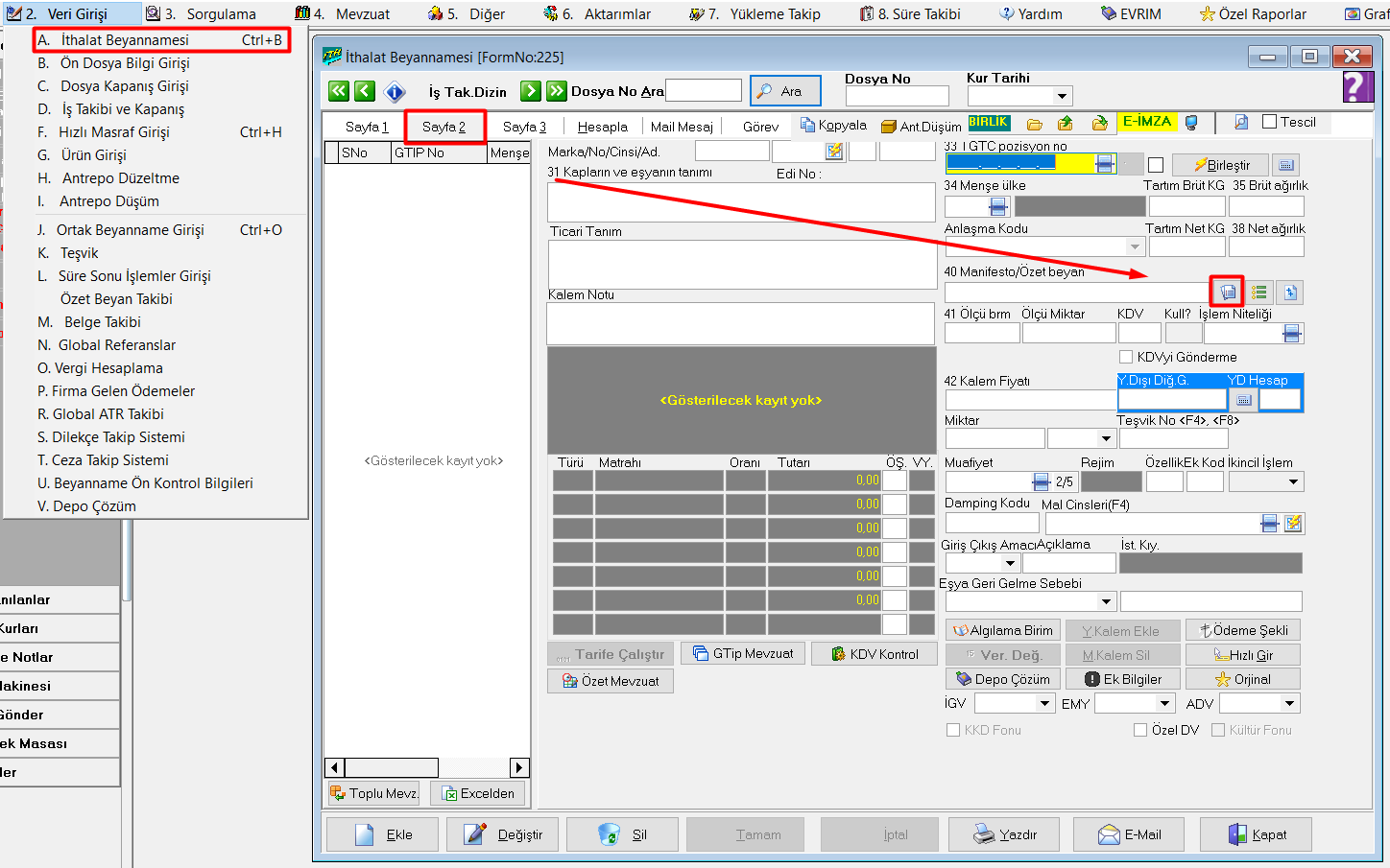 İthalat Beyannamesi / Sayfa 2'de / Hızlı Gir ekranında hatada gelen ilgili kalem için işlem niteliği bilgisi girilmelidir. Not: Hızlı gir alanında işlem niteliği kolonu bulunamaz ise sağ clik / özelleştir yapılarak listeye eklenebilir.