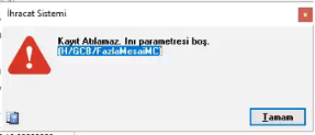 Kayıt Atılamadı. Inı parametresi boş. (H/GCB/Fazla Mesai/MC)