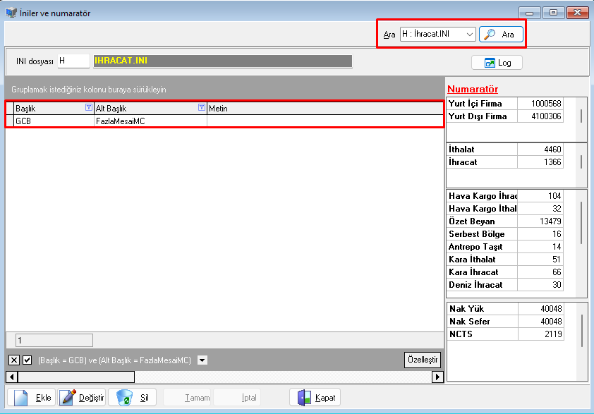 Evrim Haber / Diğer / Users / Sistem / İni Dosyası Ayarları / İhracat.INI / Gcb / FazlaMesaiMC alanına MC kodu tanımlanması gerekmektedir.