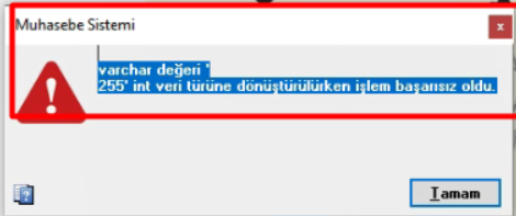 Online Banka Hesap Ekstre - varchar değeri ' 255' int veri türüne dönüştürülürken işlem başarısız oldu.