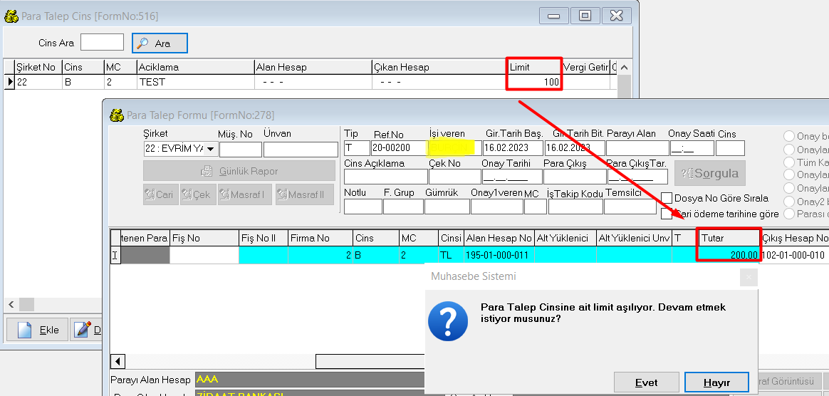 Para Talep Cinsine ait limit aşılıyor. Devam etmek istiyor musunuz?