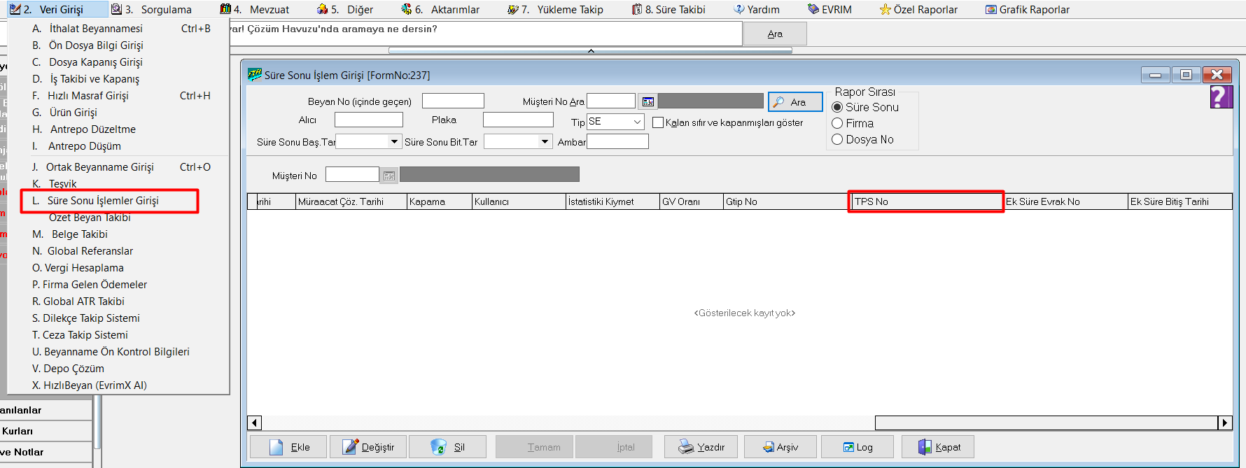 Süre Sonu İşlemler Girişi Alanına TPS NO Neden Atmıyor ?
