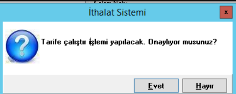 (Tarife Çalıştır işlemi yapabilirsiniz. Tarife çalıştır işleminin detayları çözümün devamına yer almaktadır.)