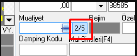 (Hem Muafiyet hem de yanında yazan 2/5 butonuna tıklayarak Diğer Muafiyet Kodu girişi yapılabilen alanları kontrol ediniz.)