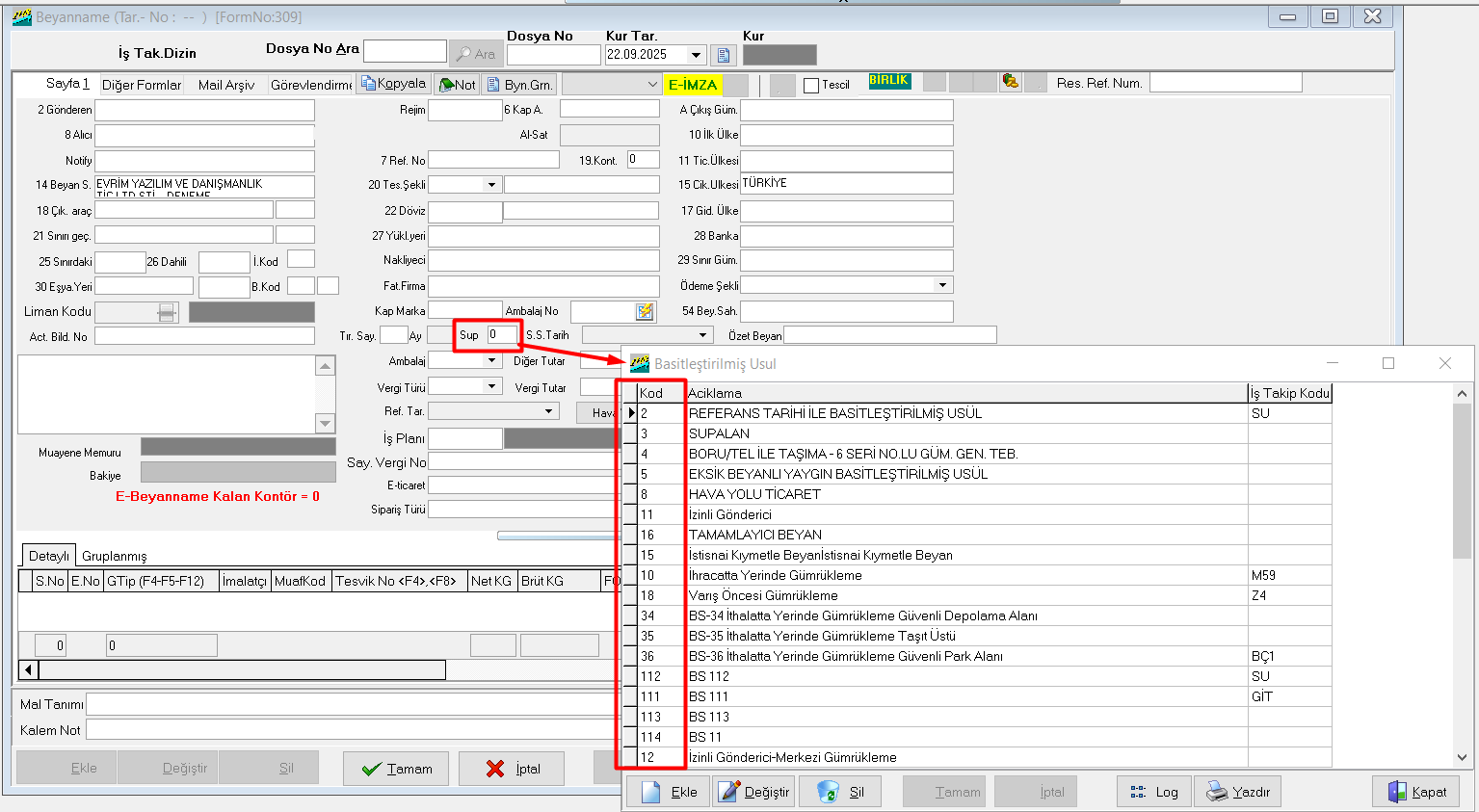 Tescil işleminde gümrükten '' Basitlestirilmis usül kodu hatali '' hatasını alıyorum ?