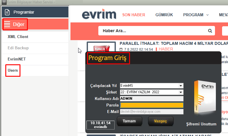 Evrim Haber / Diğer / Users ekranına Admin şifresi ile giriş yapılır. Sistem / Çoklu Yetki Girişi / Sistem: T - İthalat seçilerek Vergi hesaplama tablosunda değişiklik alanında ilgili kullanıcıya 0 yetkisi tanımlanır. Yetkisi 0 olan kullanıcı ...