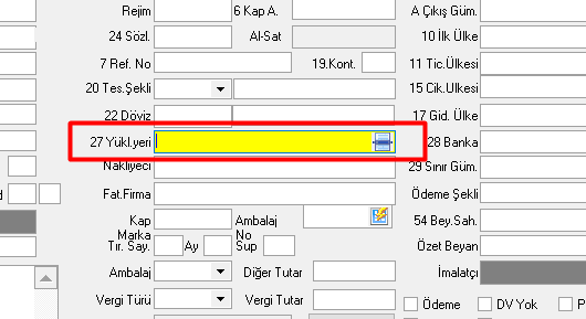 İhracat Beyannamesi/Sayfa1/27 nolu alan Yükl yeri alanı dolu olmalıdır.